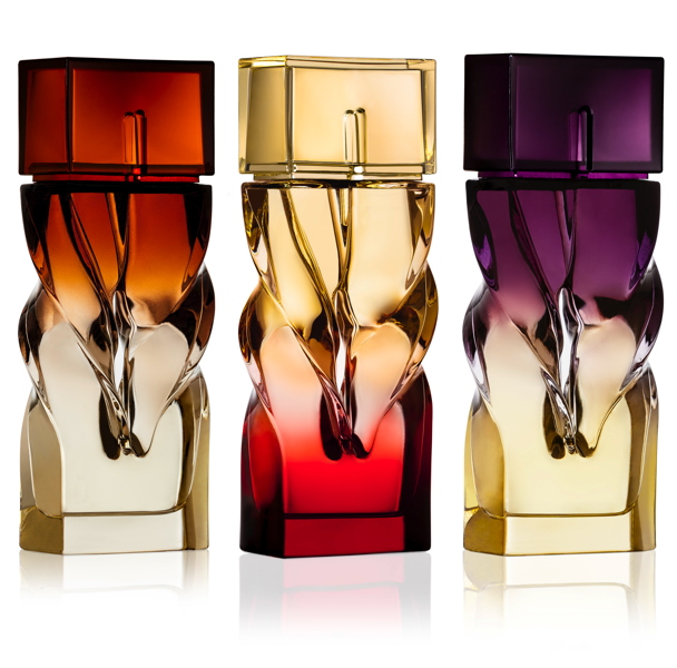 Criados em colaboração com o Studio Heatherwick, os frascos captam a luz, revelando a cor intensa de cada fragrância.