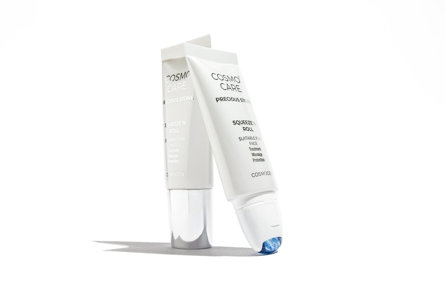 No universo da linha Squeeze’n, sucesso comercial da Cosmogen cuja principal característica é a ponta equipada com um aplicador de travamento rotativo on/off patenteado, o Squeeze’n Roll agora está disponível em quartzo azul sintético, oferecendo uma solução mais econômica que tem propriedades idênticas às do quartzo azul original. A pedra fria contribui para contrair os vasos sanguíneos, eliminando o líquido que, ao se acumular, provoca o aparecimento de olheiras.