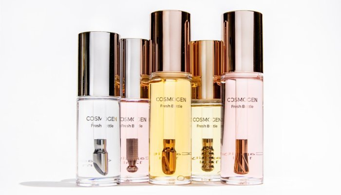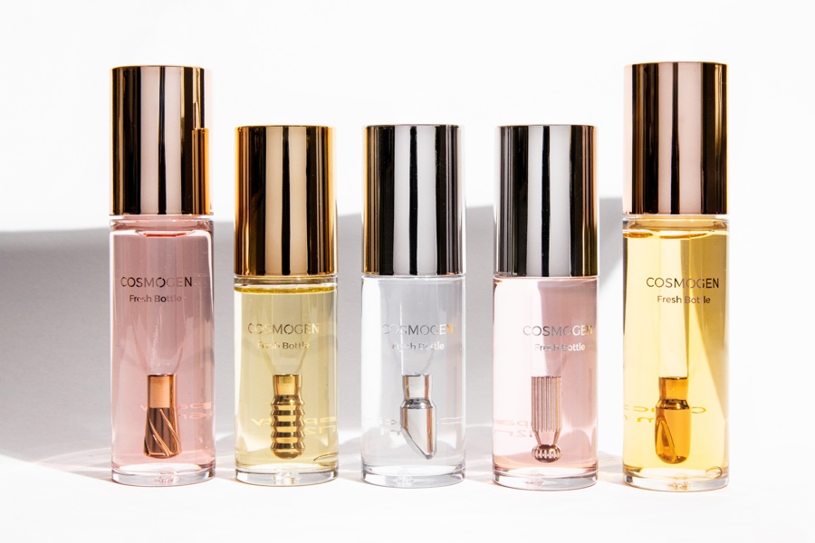Buscando inspiração nos benefícios da crioterapia, a Cosmogen lançou a Fresh Bottle, uma coleção de aplicadores "dip in" em aço inoxidável com efeito refrescante. Disponíveis em cinco formatos e texturas (Swirl, Mirror, Ribbed, V-Shape, Honey) que se adequam às diferentes regiões do rosto e do pescoço, os aplicadores acompanham frascos de plástico PET transparentes de 12 ml ou 16 ml.