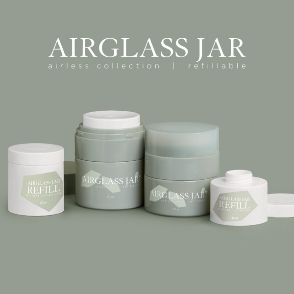 O vidro também está presente nas embalagens airless da Berlin Packaging Premi Industries, que apresentou o Airglass Jar, nova solução recarregável equipada com um mecanismo inovador: o consumidor pode recarregar o pote seguindo um passo a passo simples e prático, retirando e enchendo um refil de vidro a partir de um frasco em PP.