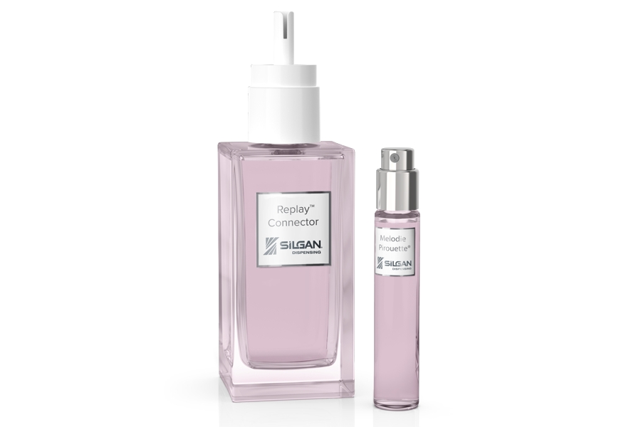 A Silgan, por sua vez, apresentou o Replay Connector, desenvolvido para facilitar o enchimento de frascos de viagem equipados com a nova tecnologia de bombas rosqueadas Pirouette SNI13, do mesmo fabricante. O Replay Connector é um sistema de refil inteiramente de plástico que utiliza a tecnologia LifeCycle, patenteada pela empresa. "Os frascos de viagem nunca receberam a atenção que merecem. Já estava mais do que na hora de termos um borrifador para pequenos formatos condizentes com o padrão das marcas de luxo", explica Sandy Gregory, diretora de Marketing Mundial de Perfumes. O dispositivo Replay Connector garante um enchimento seguro, eficaz e limpo.