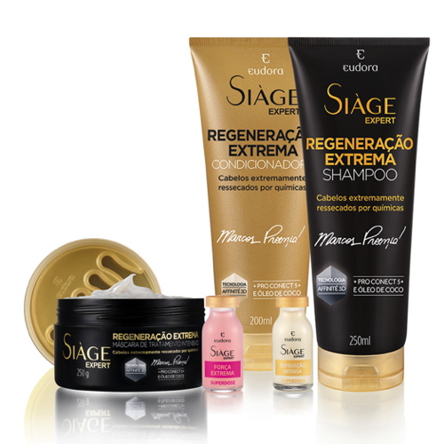 De acordo com a marca, “a linha regenera dois anos de danos químicos em apenas 30 dias”. Siàge Expert Regeneração Extrema apresenta seis produtos indicados para cabelos extremamente ressecados: Shampoo, Condicionador, Máscara de Tratamento Intensivo e as inovadoras Superdoses que chegam em três diferentes versões.