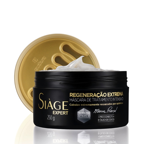A Máscara Siàge Expert Regeneração Extrema de Tratamento Intensivo (R$ 47,99) possui fórmula altamente concentrada que regenera até o córtex do fio, proporcionando cabelos hidratados e 3 vezes mais resistentes desde a primeira aplicação.