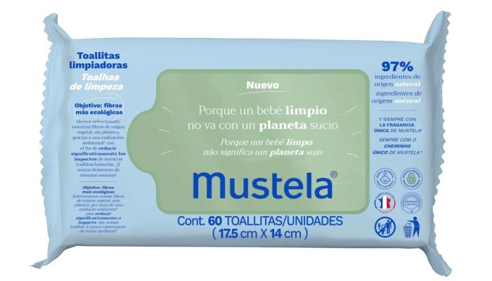 A Mustela, primeira marca dermo-bebê do grupo Expanscience, decidiu mudar o material das fibras usadas para suas toalhas umedecidas uma nova composição mais sustentável, à base plantas e livre de plástico. O novo produto conta ainda com 97% de ingredientes cosméticos de origem natural. Os 3% restantes são usados para garantir a proteção a longo prazo da fórmula.