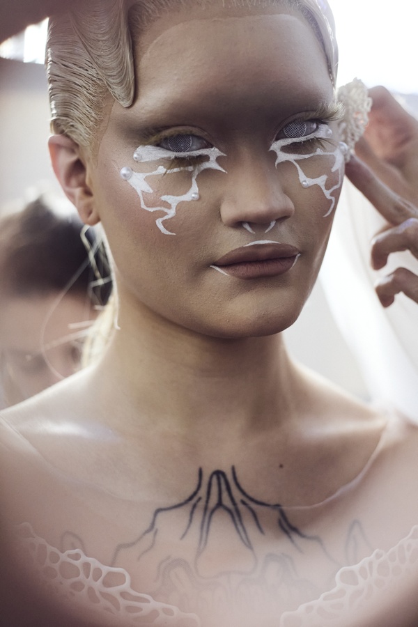 Para realçar a beleza do seu desfile, a estilista holandesa contou com a colaboração da Nars e da maquiadora Karin Westerlund. Inspirada nas próprias criações de Iris e no universo sensorial da marca ao longo dos anos, Karin criou uma maquiagem fresca e radiante.