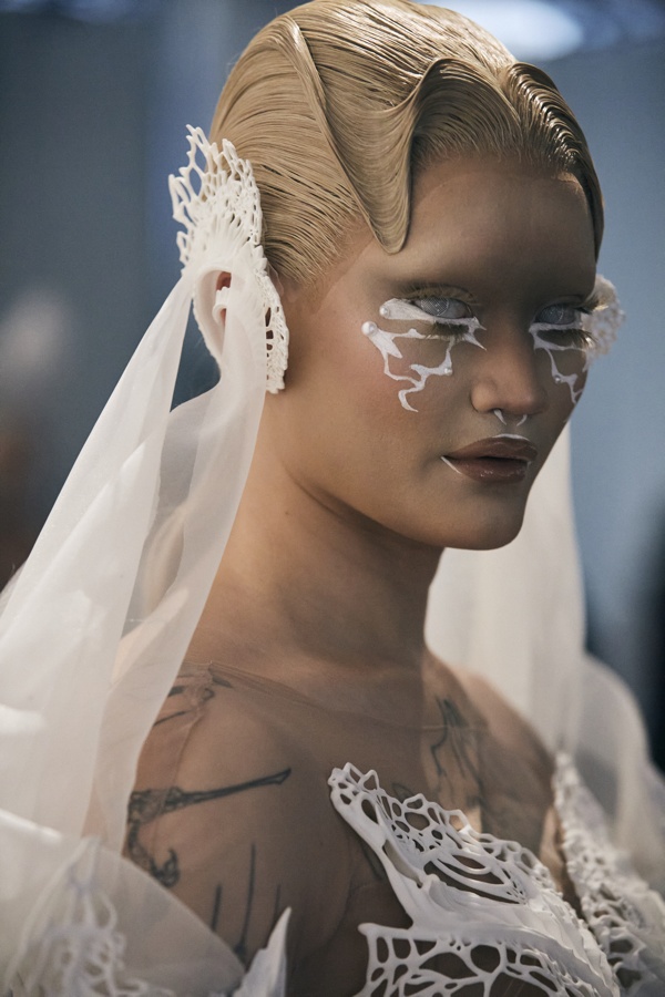De acordo com a Nars, esta colaboração entre Iris Van Herpen e a marca de beleza não apenas celebra a moda de vanguarda, mas também reafirma a sinergia entre moda e beleza artística.