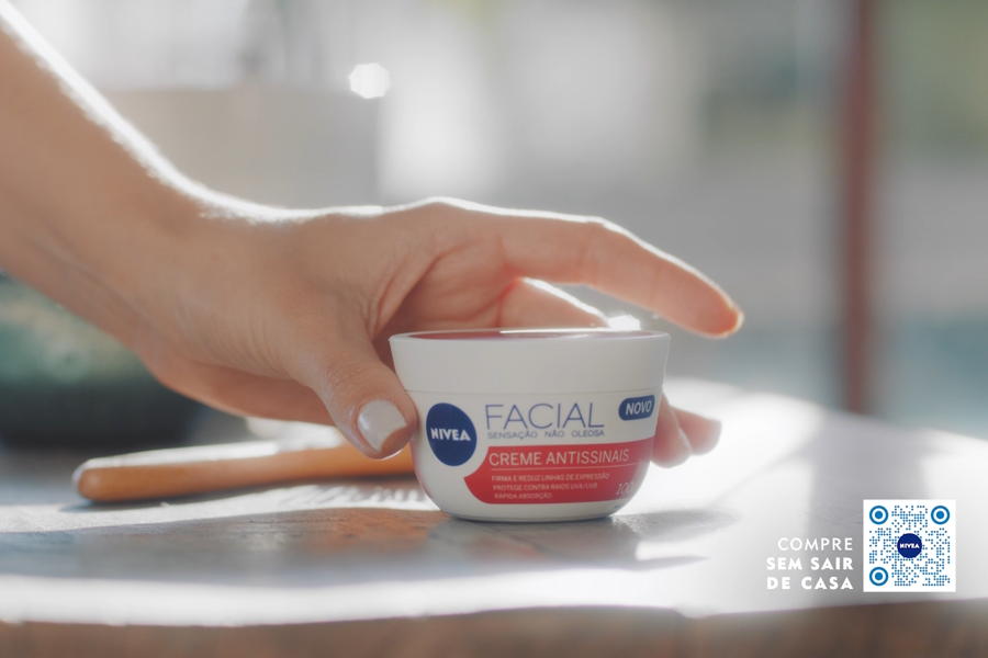 Os filmes de 30” e 15” estão na TV aberta. E para completar contam com um QR Code de acesso a landing page niveafacial.com.br, que reúne informações sobre os produtos, cuidados com a pele e também canais onde os cremes faciais podem ser comprados.