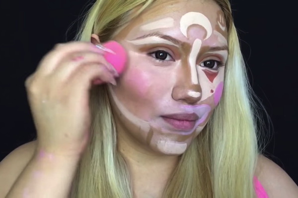 Usando métodos clássicos de contouring, ela traça desenhos divertidos (emoticons, por exemplo), que depois são esfumados com uma esponja. O resultado é uma maneira original e eficaz de se maquiar.