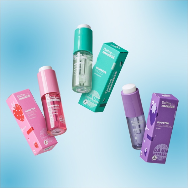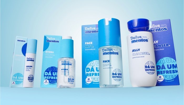 Ela conta que a premissa da collab é levar a experiência sensorial refrescante de Mentos para uma linha de produtos de beleza divertida. “A partir do slogan da marca – ‘Dá um Refresh!’ – e dos seus produtos mais vendidos, desenvolvemos uma coleção que comemora o début da Dailus em skincare, além de contar com itens nas nossas principais categorias: lábios e unhas.”