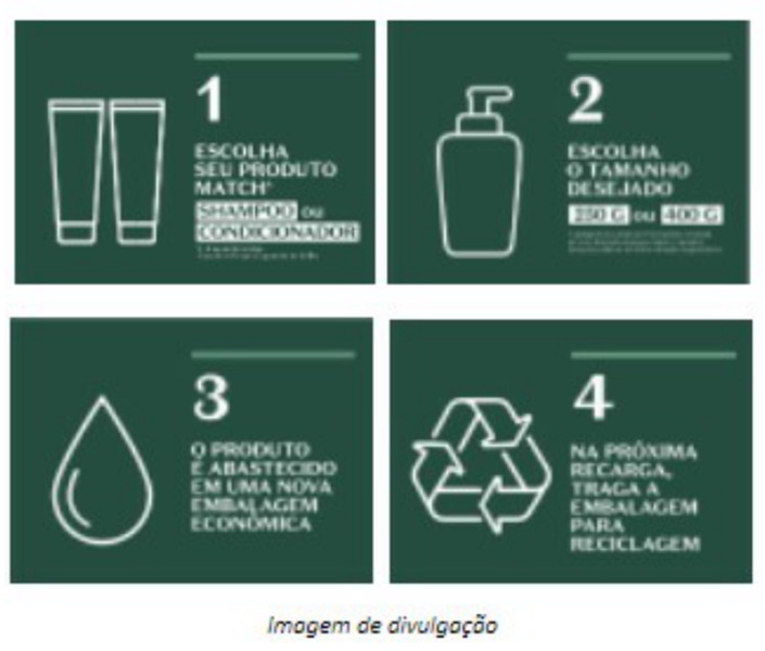 Foram escolhidos para o projeto-piloto tratamentos de brilho e força para os cabelos da marca Match, compostos por shampoo e condicionador, que estarão disponíveis nas volumetrias de 250 g e 400 g com o melhor custo-benefício para o consumidor, que terá uma economia final de 16% a 23%, em comparação aos formatos convencionais da marca.