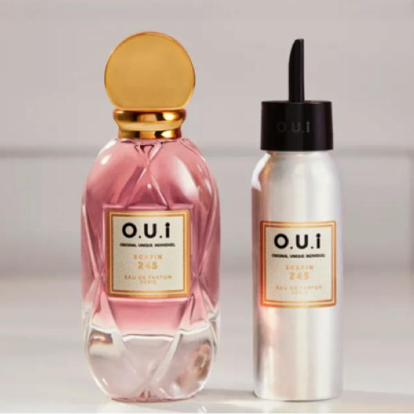 O.U.i também se preocupa com a sustentabilidade de fragrâncias! É a primeira marca da América Latina a usar a licença Techniplast exclusiva da Aptar para refil de fragrâncias usando o design personalizado da tecnologia da Aptar para seus produtos.