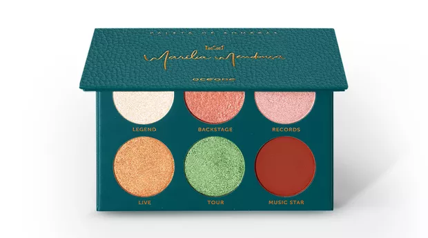 – Uma paleta de sombras com cores Legend (champagne), Backstage (rose), Records (rosa), Live (dourado), Tour (verde) e Music Star (marrom).