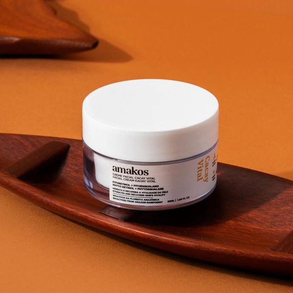 Lançada comercialmente em 2023, a Amakos incluiu o óleo de cacay em um sérum e um creme de uso facial, além de uma loção corporal. “Acredito que, com as pesquisas científicas a respeito das propriedades do cacay, nós veremos esse ativo mais valorizado na cosmética nacional”, fala a executiva.