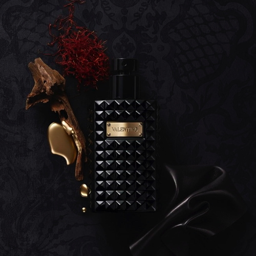 Seguindo a tendência NOIR presente na perfumaria, Valentino lançou agora em maio OUD ESSENCE, também adotando elementos escuros e dourados que remetem a luxo e exclusividade.
