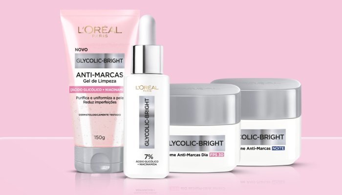 L’Oréal Paris, que ainda conta com a Revitalift Laser X3, com moléculas de Pro-Xylane para uma pele mais densa e firme, apresentou em 2024 o Glicolyc Bright, a primeira incursão da marca fora do segmento antissinais.