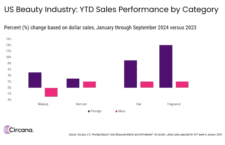 Com a proximidade das festas de fim de ano, as vendas de produtos de beleza do segmento de prestígio registraram crescimento de 7% nos Estados Unidos, movimentando 22,8 bilhões de dólares nos nove primeiros meses do ano, segundo relatório publicado pela Circana, agência especializada em estudos de mercado. Já no segmento de massa, as vendas cresceram 2% em relação ao mesmo período no ano passado.