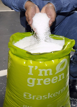 Desde 2007, a companhia petroquímica brasileira Braskem vem trabalhando com uma alternativa mais sustentável: um plástico elaborado a partir do etanol da cana-de-açúcar. “O plástico verde é o primeiro de fonte renovável do mundo”, afirma Gustavo Sergi, diretor de químicos renováveis da Braskem. “Seu principal diferencial é a contribuição para a redução da emissão dos gases do efeito estufa na atmosfera, pois captura gás carbônico durante seu processo produtivo”. Dados da empresa apontam que cada tonelada de polietileno verde produzida corresponde a mais de três toneladas de CO2 retiradas da atmosfera.