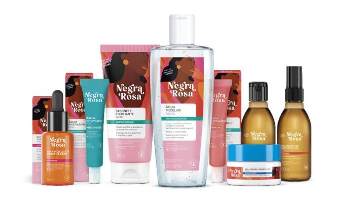 “Durante muitos e muitos anos, a população negra foi invisível para o mercado de beleza, mesmo consumindo e movimentando esse setor”, afirma Rosangela Silva. Em ela fundou em 2016 a marca Negra Rosa, pioneira em beleza negra no Brasil, com um portfólio que inclui skincare, proteção solar, maquiagem e cuidados com o cabelo.