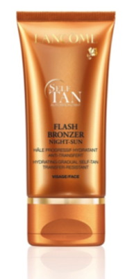 E para quem sonha em se bronzear enquanto dorme, a Lancôme decidiu inventar o sol noturno, a fim de garantir um rosto corado e saudável pela manhã: o Flash Bronzer Night Sun, aplicado à noite, revela uma pele resplandecente ao acordar. Dia após dia, a intensidade vai sendo modulada para atingir o tom ideal. Além disso, o Flash Bronzer é um excelente tratamento noturno para a pele, graças à presença de uma trilogia de óleos preciosos: monoi, rosa mosqueta e argan. Sem esquecer que o produto foi formulado para não manchar roupas nem lençóis.
