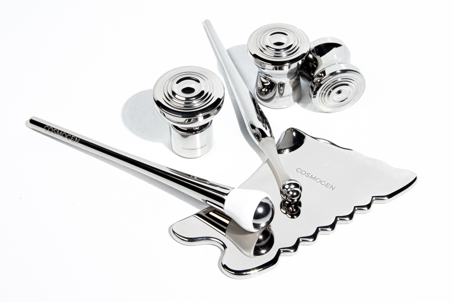 Em sintonia com a tendência ao uso de aplicadores metálicos, a Cosmogen desenvolveu uma coleção completa de acessórios de massagem em aço inoxidável 316L que podem ser colocados na geladeira (ou não), a fim de criar um ritual reparador, reforçado com os benefícios da baixa temperatura.