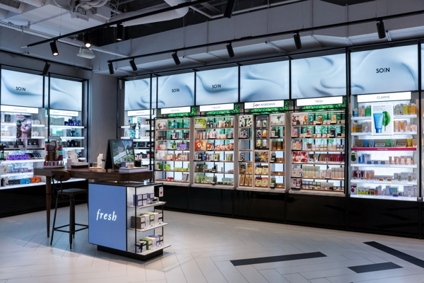 Aliando o estilo que caracteriza o universo da Sephora a uma arquitetura marcadamente urbana (cimento, teto sem forro), a loja "New Sephora Experience" da estação Saint-Lazare é um convite à descoberta de espaços e serviços inéditos. No "Mini Skincare Market", as clientes têm à sua disposição produtos em formatos que podem ser facilmente transportados, bem como uma grande variedade de kits que permitem testar os produtos por um preço mais em conta, além de uma nova seção inteiramente dedicada aos "Super Ingredientes".