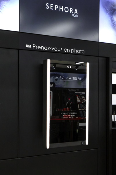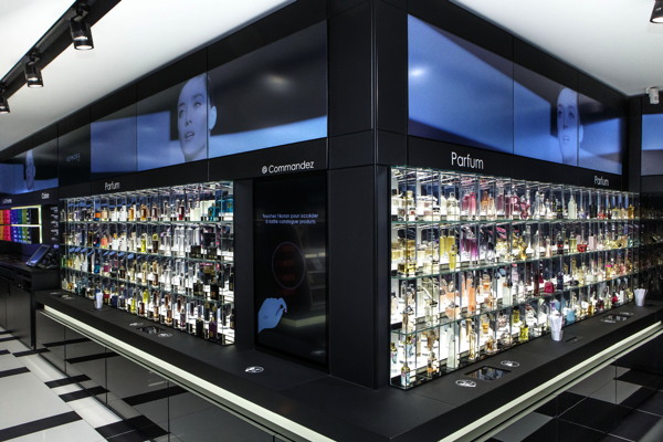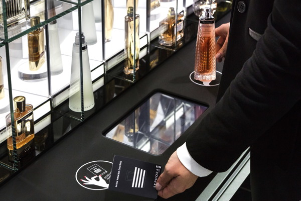 A primeira diferença - e que diferença! - é que os clientes não usam uma, mas duas cestas: a cesta real, para escolher produtos dentro da ampla oferta de maquiagem e cosméticos especializados disponíveis na loja; e a cesta digital, que tem a forma de um cartão NFC e dá acesso aos produtos oferecidos no site da Sephora, ou seja, 14 mil referências, por meio de terminais, tablets e gôndolas digitais espalhados pela loja.