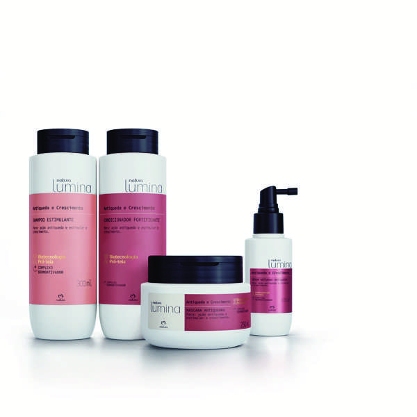 A Natura apresentou há poucos meses o Lumina Antiqueda e Crescimento. “O Brasil é um dos países que mais relata queixa de queda capilar e nossa proposta é combater de forma intensa os principais fatores através de um tratamento tópico e integral. A linha também recupera o equilíbrio e a vitalidade do couro cabeludo e acelera o crescimento com fios mais fortes desde a raiz”, afirma Juliana Lago, gerente científica de pele e cabelos da marca.