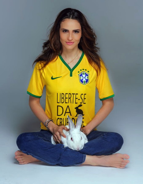 Enquanto o Brasil está fazendo gols no Mundial, a supermodelo Fernanda Tavares e a entidade de proteção animal Humane Society International (HSI) lançaram um apelo aos senadores para marcarem “um gol a favor dos animais por meio da proibição dos testes em animais para cosméticos.”