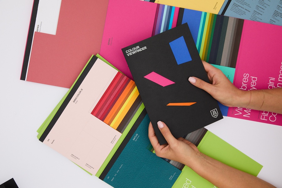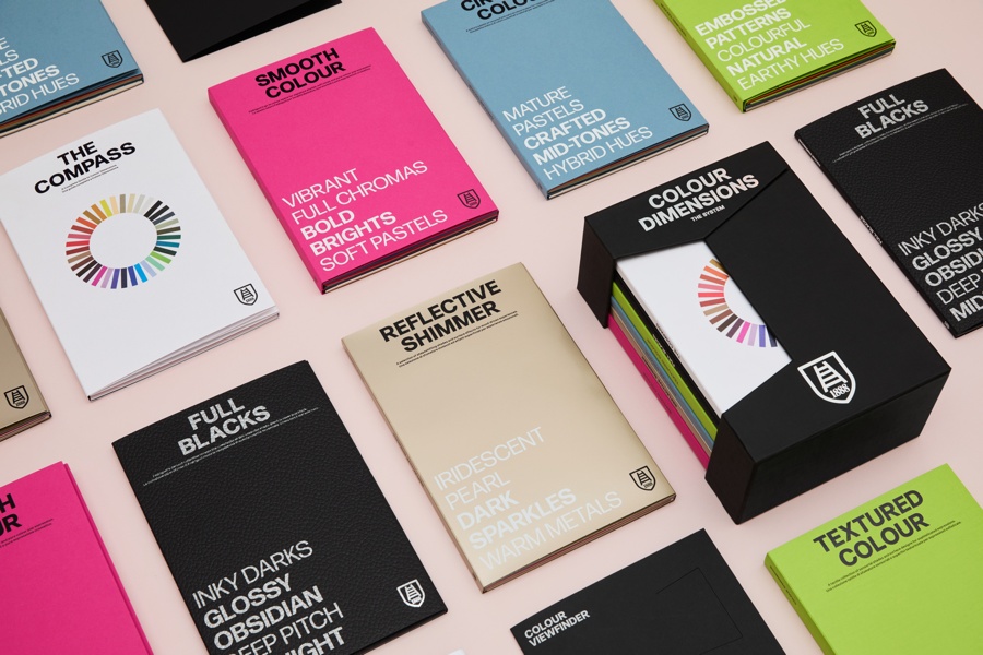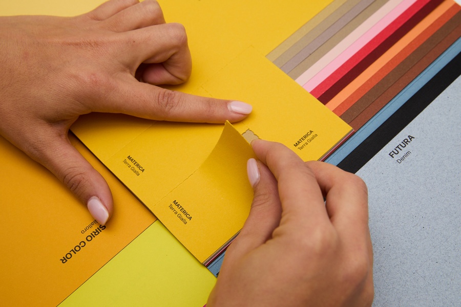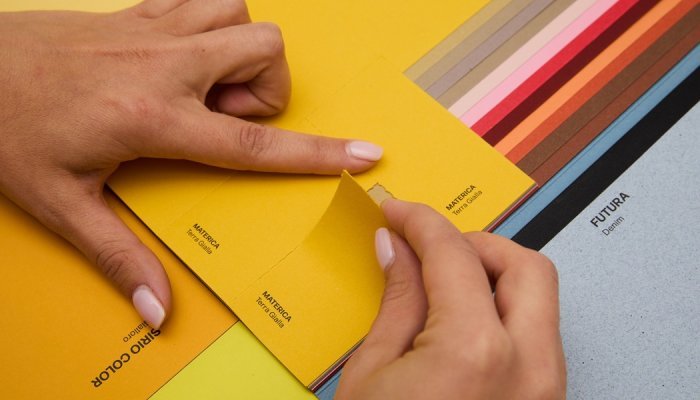 Todos os papéis da gama Colour Dimensions da Fedrigoni estão divididos em 5 famílias estéticas com base na cor, no material e no acabamento.