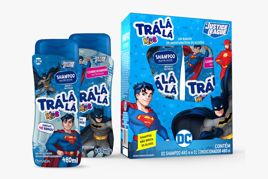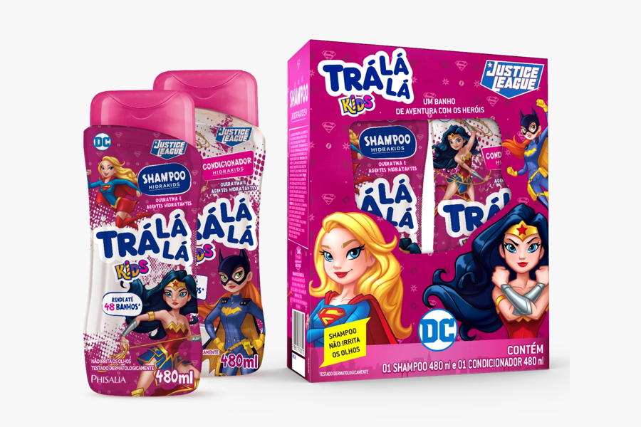 A Phisalia, empresa detentora de Trá lá lá, possui um longo histórico em fabricar produtos licenciados e, segundo o Kantar panel em litros 2020, é uma das marcas mais reconhecidas e usadas pelas crianças nas categorias banho, pós banho e oral care. Atualmente, junto a sua marca de higiene infantil, aderiu a estratégia de co-branding para atrair novos consumidores e gerar experimentação. Por isso, o lançamento dos shampoos e condicionadores das linhas Hidrakids e Nutrikids de Trá lá lá ganharam uma nova cara com os personagens da Liga da Justiça e a linha de cremes dentais com o Flash, Supergirl e Super-homem nos sabores tutti-frutti, morango e bubble gum.