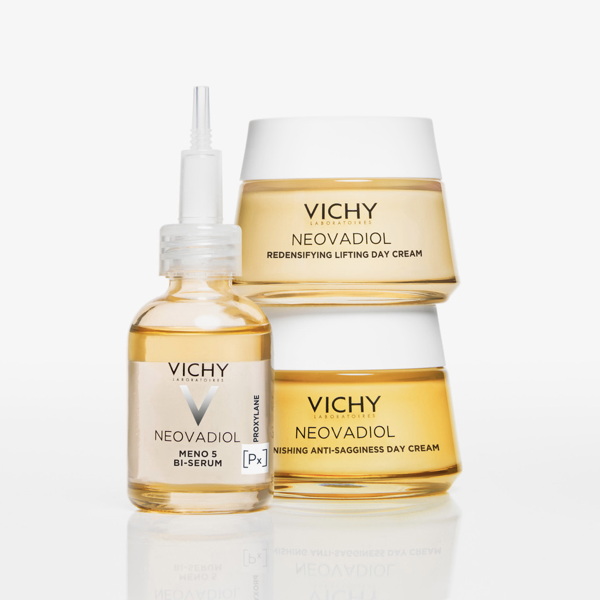 A renovação da linha de cuidados Neovadiol teve justamente como objetivo traduzir, da melhor maneira possível, os conhecimentos que adquirimos, em particular sobre as duas fases da menopausa, ou seja, a fase perimenopausa e pós-menopausa, que não geram as mesmas necessidades.
