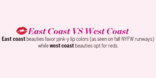 O estudo mostrou que existem diferenças significativas entre os batons preferidos pelas americanas de Nova York e as americanas de Los Angeles. As mulheres que vivem na parte leste dos Estados Unidos parecem gostar mais de batons com tonalidades rosa, enquanto que as americanas que vivem na costa oeste priorizam o vermelho.